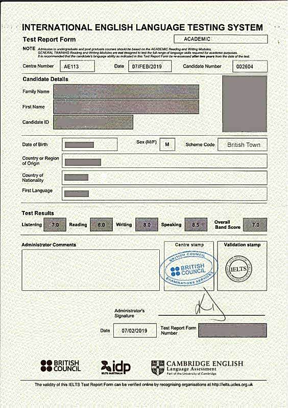 - IELTS Sonuç Belgesi Örneği